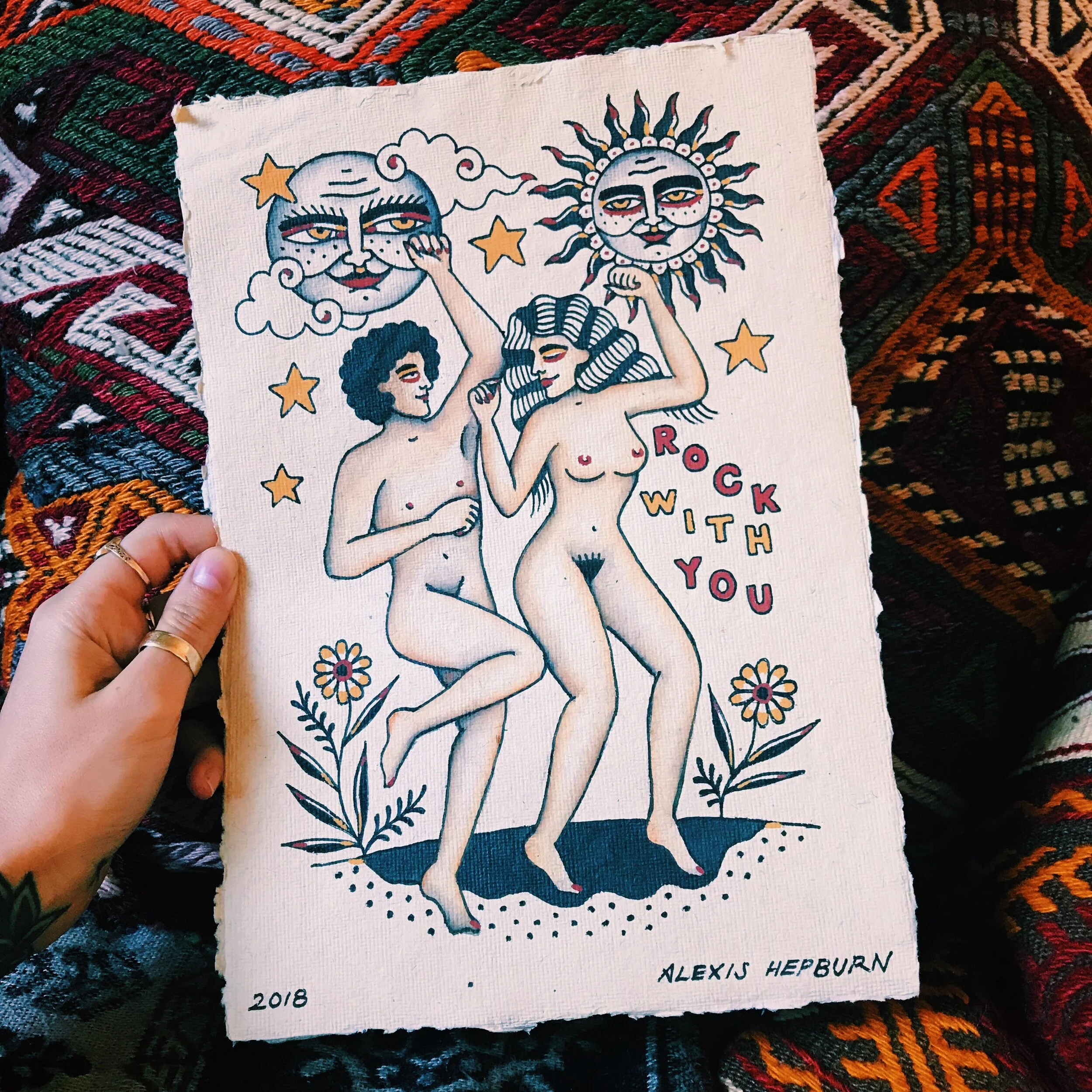 Alexis commenced her career tattooing in 2013, after building a reputation from her unique folky paintings. After spending the majority of her years tattooing on the Gold Coast, Alexis’s art; travelling on skin and paper, can be found all across the globe.